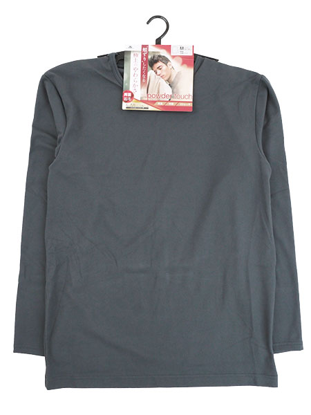 冬用メンズ肌着、頬ずりしたくなる極上のやわらかさ、両面起毛の長袖丸首シャツ。
