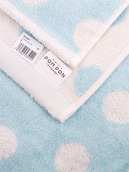 POM PON、ポンポンフレンズのバスタオル、シフォンドット(水玉柄)。