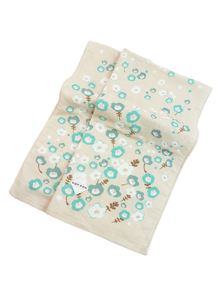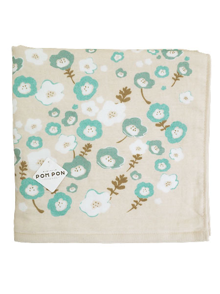 POM PON、ポンポンフレンズのバスタオル、るりから、プリント、表ガーゼ裏パイル。