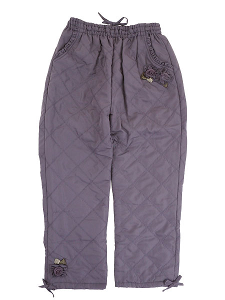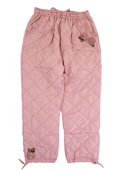 花のモチーフが可愛らしい、ふんわり暖かいキルトのパンツです。