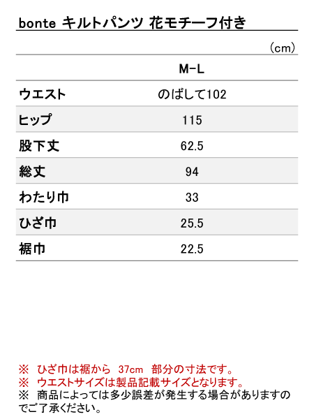 bonte 婦人中わたキルトパンツ 花モチーフ付き