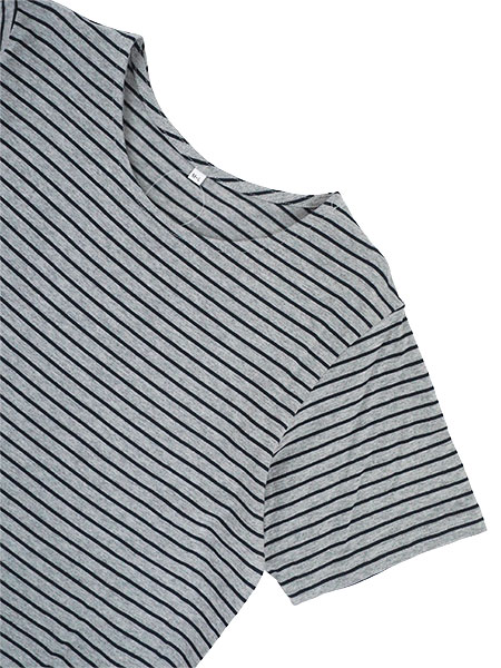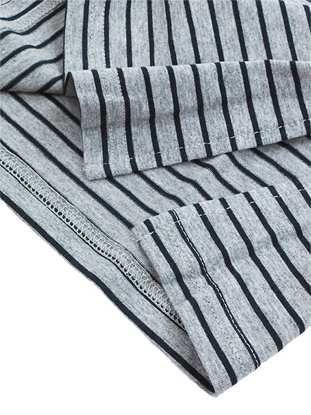 細ボーダー柄で丸首のかぶりタイプ。ポケットなし。