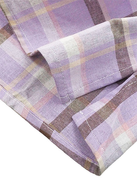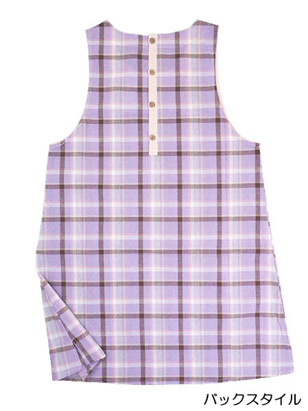チェック柄のかぶりタイプで後ろ4個ボタンで半開。