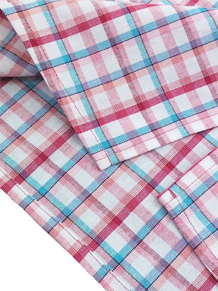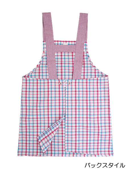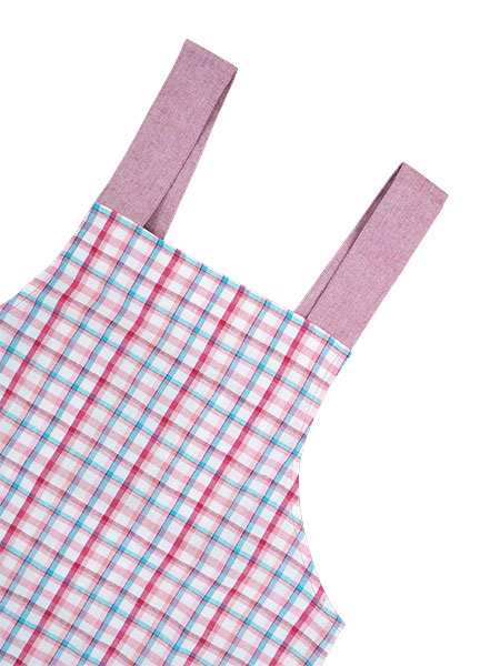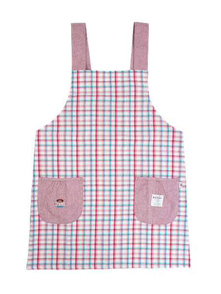 ポケット部分にビッグママのワンポイントが付いたチェック柄のかわいいエプロン。