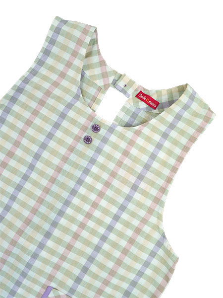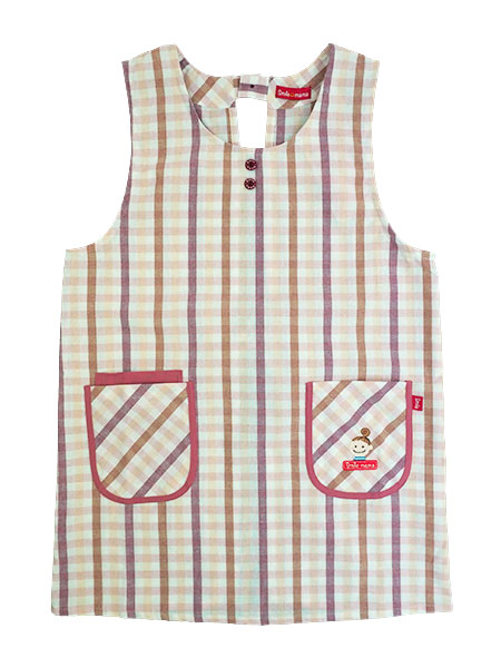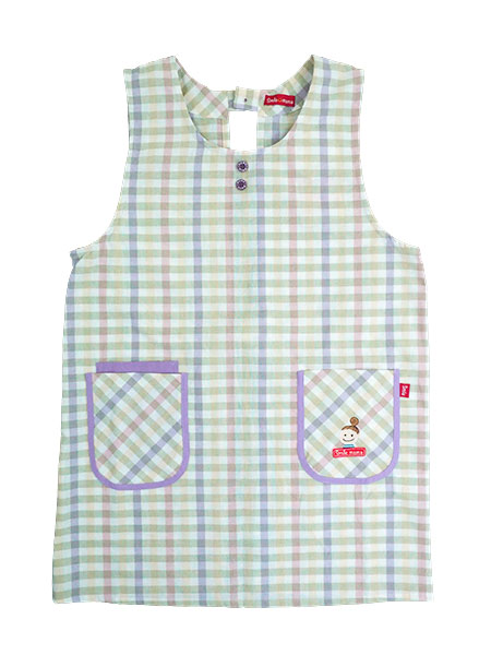 胸元に飾りボタンが2つ、ポケットにスマイルママのかわいいワンポイントがあります。
