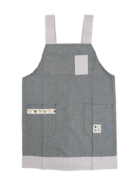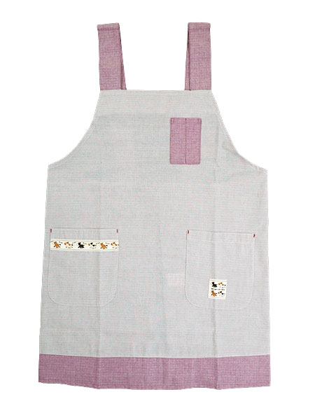 BABY PONY 婦人ドビーダンガリーH型エプロン 無地の切り替え