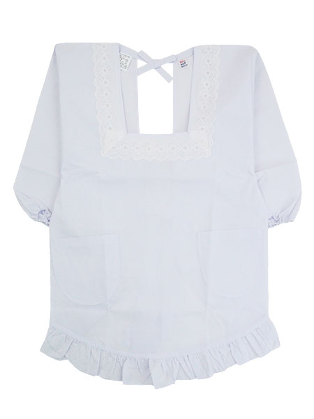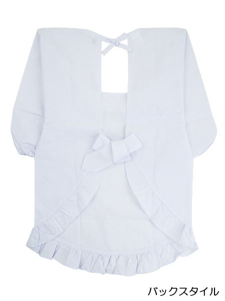 角衿 白和装割烹着 M寸80センチ丈 裾に丸ヒダ付き
