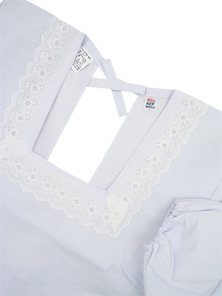 胸元にレース付き、裾に丸ヒダ付き(長さ約6.5cm)。