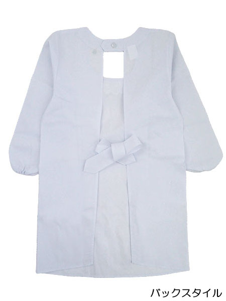 丸衿 白洋装割烹着 M寸85センチ丈 裾ヒダなし