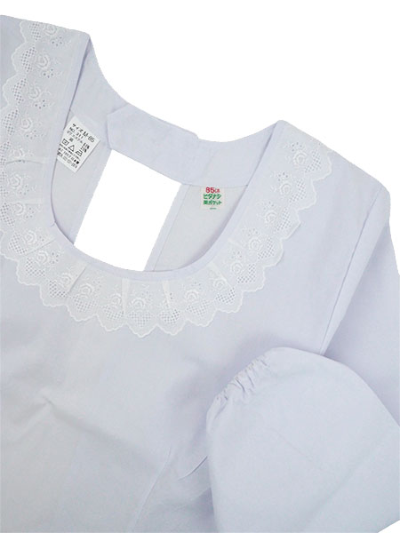 胸元にレース付き、裾ヒダなし。