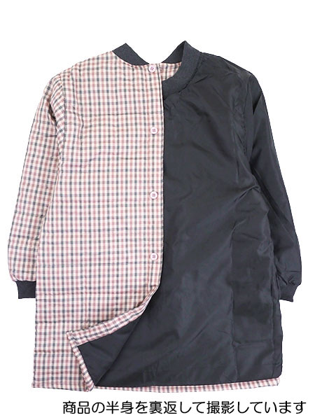 中綿入りでふっくら暖かい冬用、チェック柄のかっぽう着。