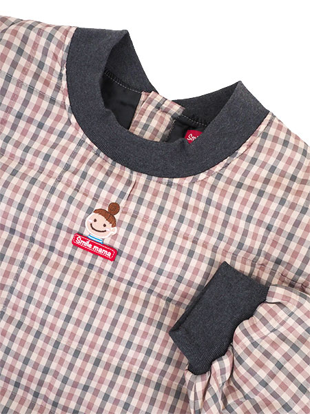 Smile mama(スマイルママ) 中わた入りキルト割烹着 小さめチェック柄 背ボタン
