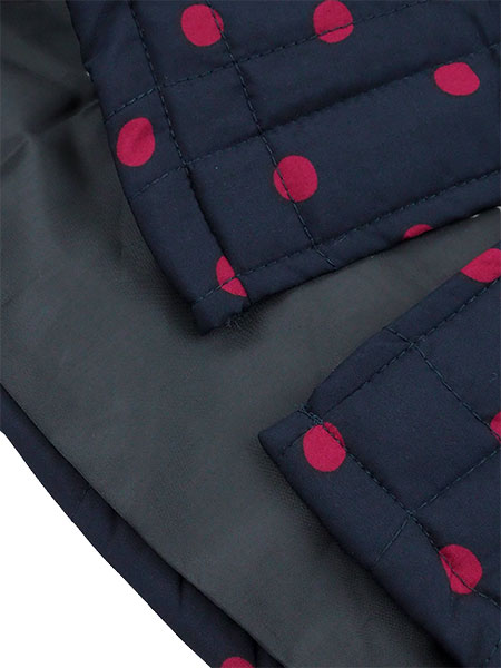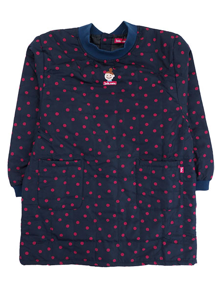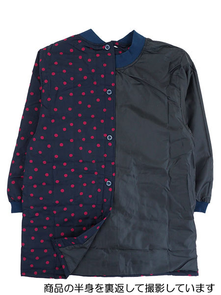中綿入りでふっくら暖かい冬用、水玉柄のかっぽう着。