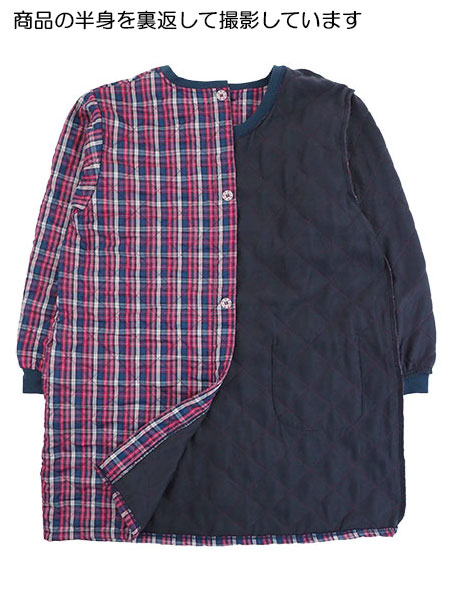 Big mama(ビッグママ) キルト裏フリース割烹着 チェック柄 背ボタン