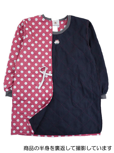 Big mama(ビッグママ) キルト割烹着 裏フリース 水玉柄 後ろ開き