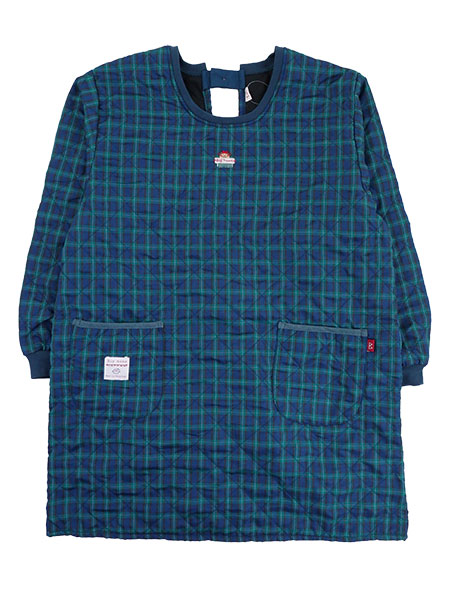 グリーン&ネイビー系のチェック柄のあったかエプロンです。