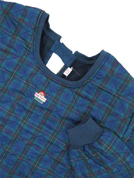 Big mama(ビッグママ) キルト割烹着 裏フリース グリーンチェック柄 後ろ開き