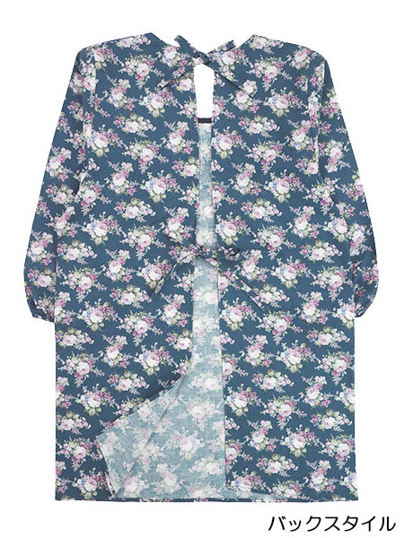 薄手の綿100%生地使用のおしゃれな花柄プリント割烹着です。