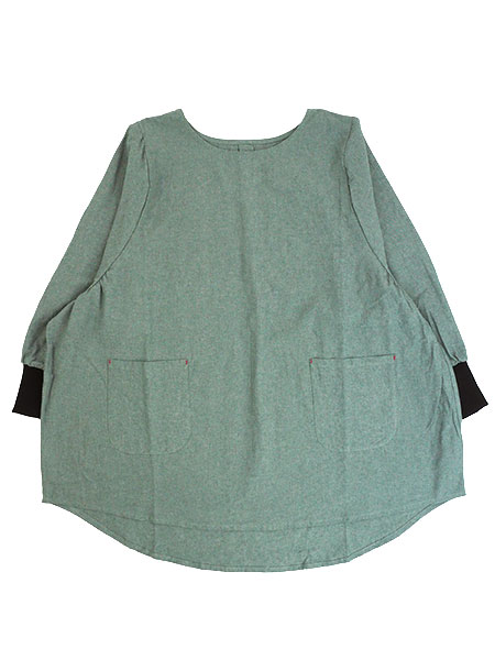 かぶりタイプとなっており、後ろはボックスプリーツが1本入っているデザインです。