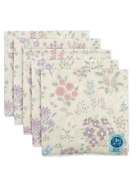 三重袷ガーゼ ガーゼハンカチ 野の花 5枚組