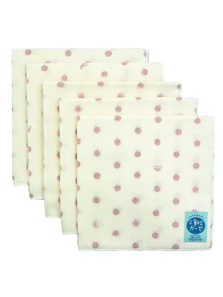 三重袷ガーゼ ガーゼハンカチ りんご 5枚組