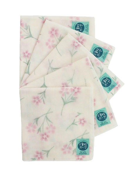 三重袷ガーゼ ガーゼハンカチ なでしこ 5枚組
