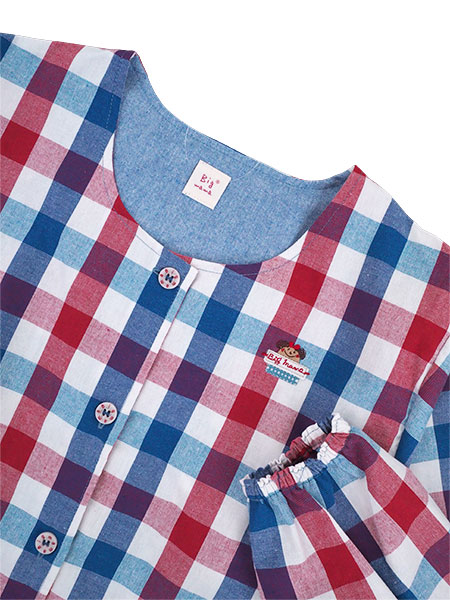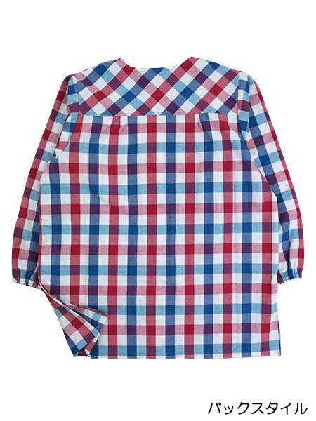 Big mama(ビッグママ)婦人前あきスモック チェック柄