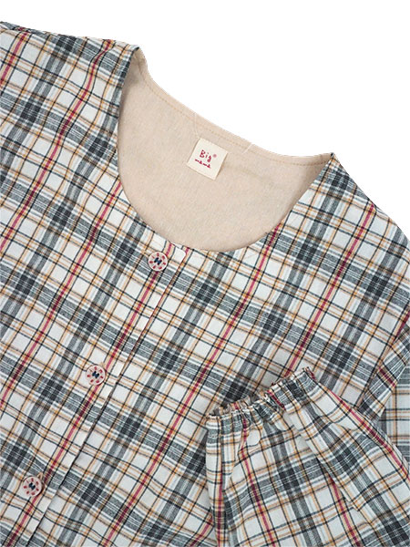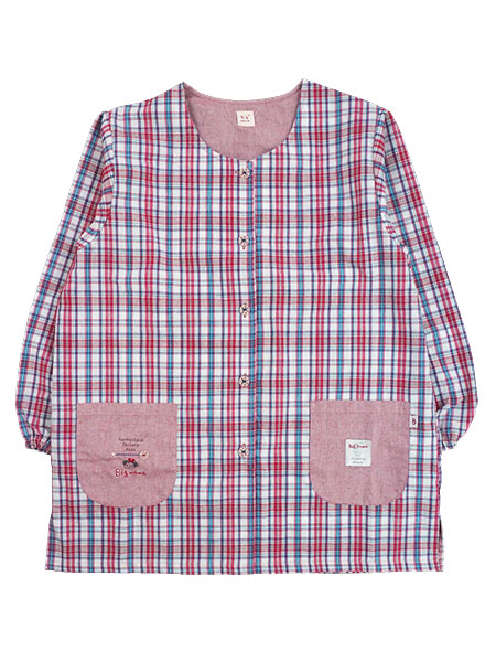 Big mama(ビッグママ)婦人前あきスモック チェック柄