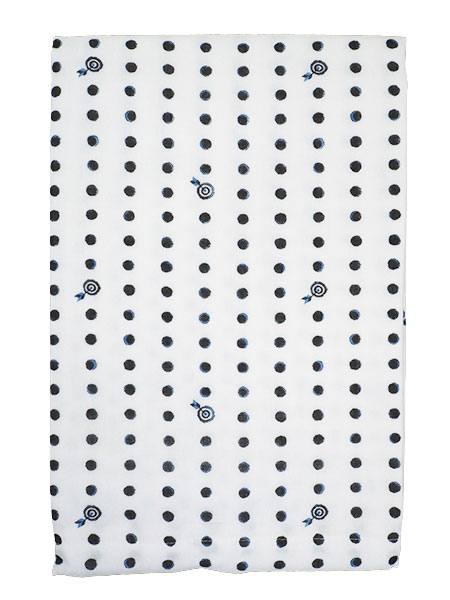 ところどころに的に当たった矢がある、豆しぼり柄の湯上りです。