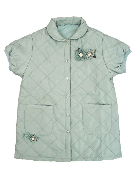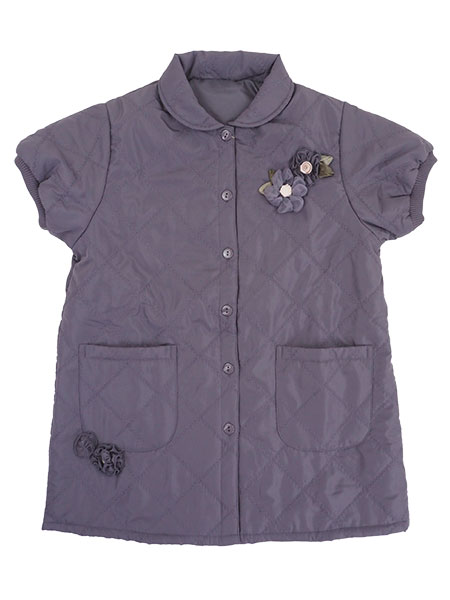 花のモチーフが可愛らしい、ふんわり暖かいキルトの前開きベストです。