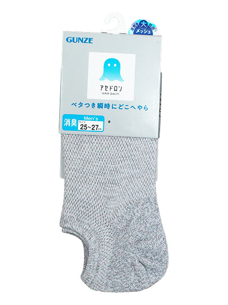 GUNZE(グンゼ)アセドロン、メンズソックス、スニーカー丈 、消臭、無地。