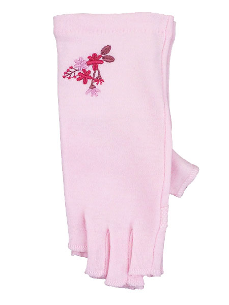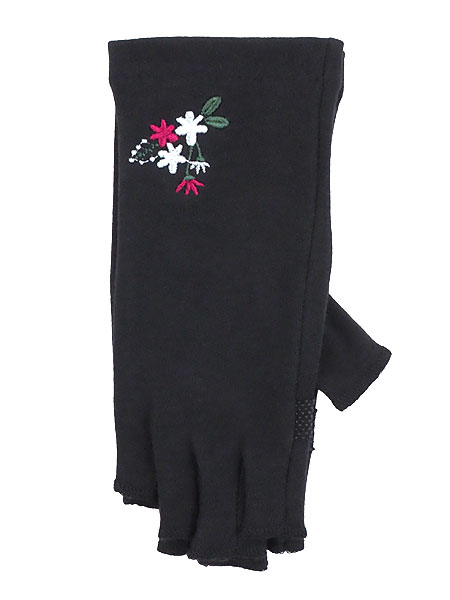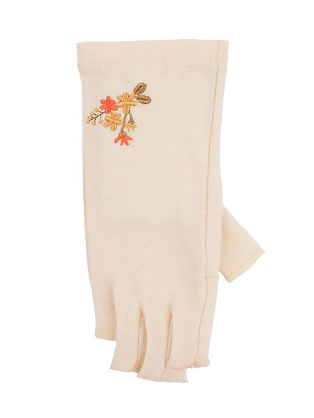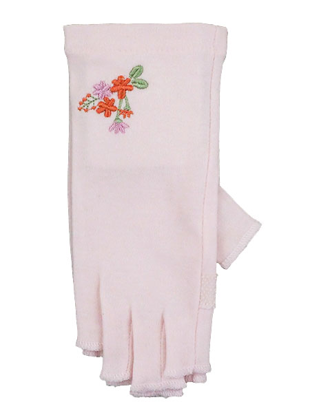 UV GLOVE 手肌美人 婦人日よけ手袋 指切り 花の刺繍 長さ19cm ショートタイプ