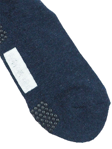 足底に滑り止めと名前スペース付き。抗菌防臭加工