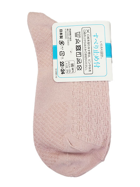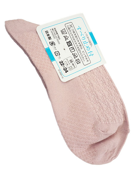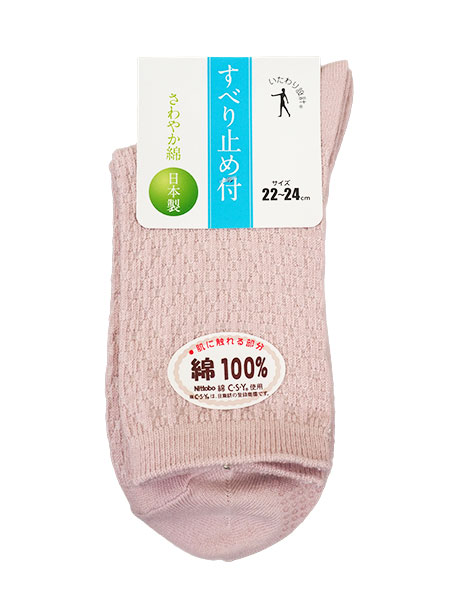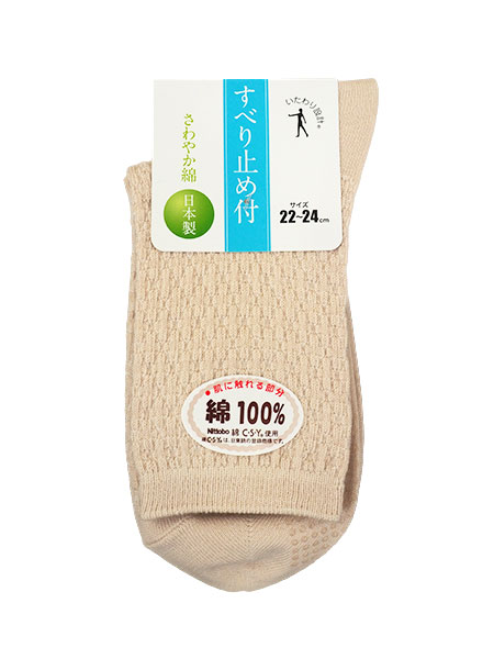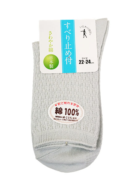 いたわり設計 婦人ソックス 滑り止め付き 織り柄 さわやか綿