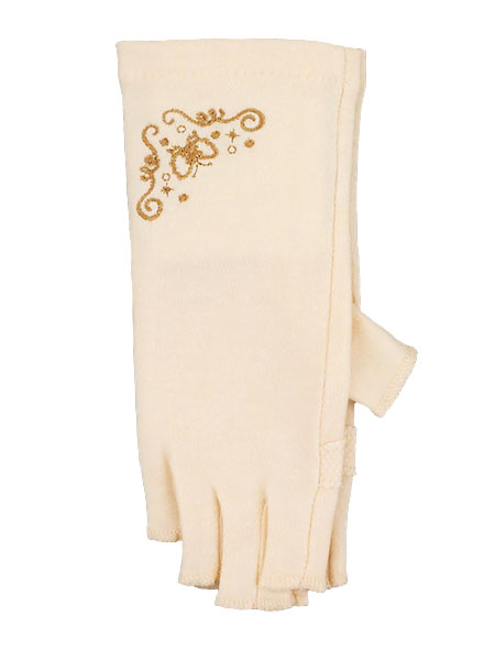 UV GLOVE 手肌美人 婦人日よけ手袋 指切り 蝶の刺繍 長さ19cm ショートタイプ