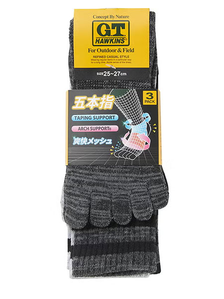 GUNZE(グンゼ)G.T.HAWKINS(GTホーキンス)、メンズ5本指靴下、3足組。