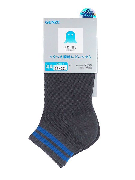 GUNZE(グンゼ)アセドロン、メンズソックス、 ショート丈、2本ライン、消臭。