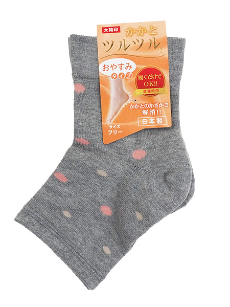 婦人かかとツルツルソックス おやすみタイプ つま先なし 水玉柄