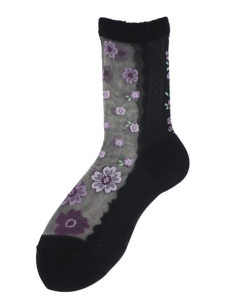 Telephone0.0 婦人 シルク混 シースルーソックス 花柄