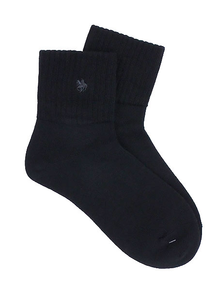 履き口リブ、ゆったり履きぐち。左右片側にワンポイント付き。