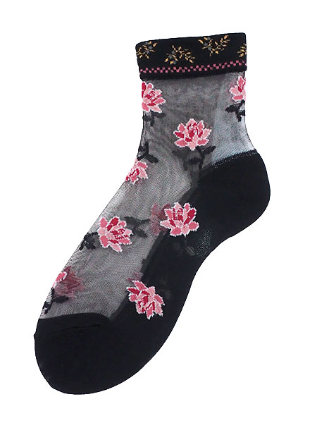 Telephone0.0 婦人 シルク混 シースルーソックス 花柄