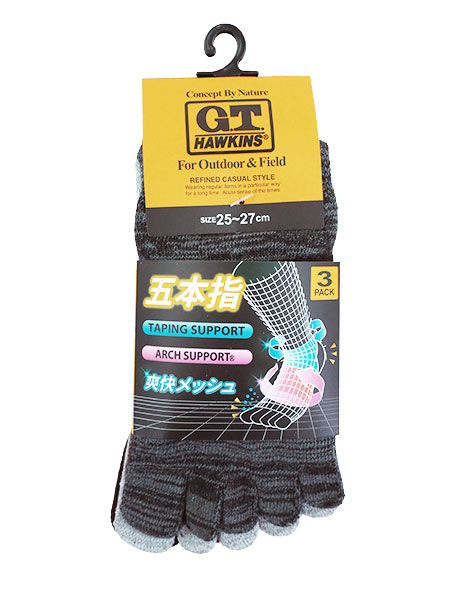 GUNZE(グンゼ)G.T.HAWKINS(GTホーキンス)、メンズ5本指靴下、3足組。