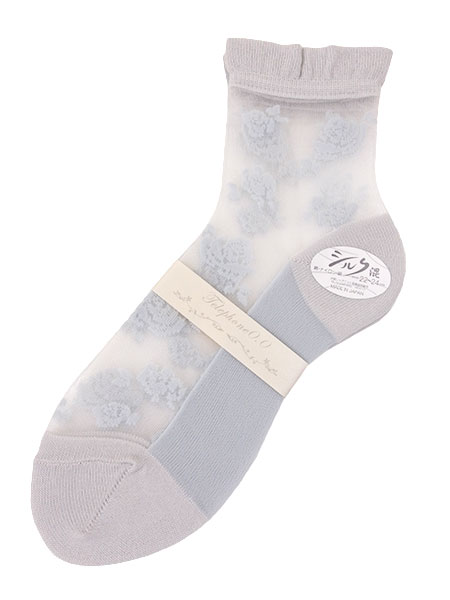 シースルー部分にローズがデザインされた、足底付きの夏向き靴下。
