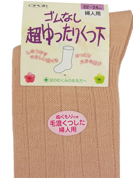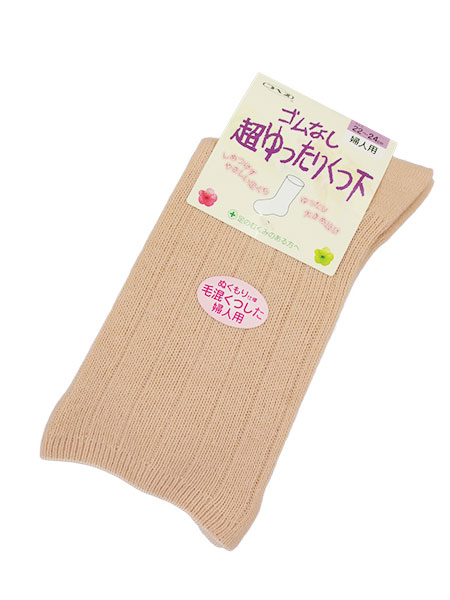 ゴムなし超ゆったりくつ下 婦人ソックス ぬくもり仕様 毛混