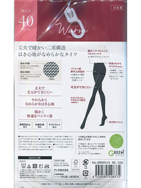 グンゼ SABRINA(サブリナ)Warm 婦人タイツ 40デニール きれいに透ける