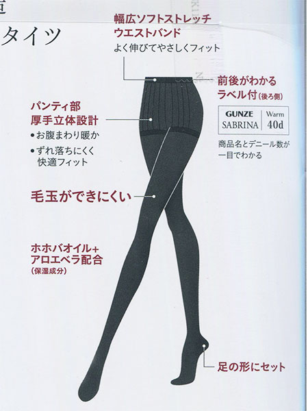 GUNZE(グンゼ)サブリナWarm(ウォーム)薄手レディースタイツ、きれいに透ける40デニール。