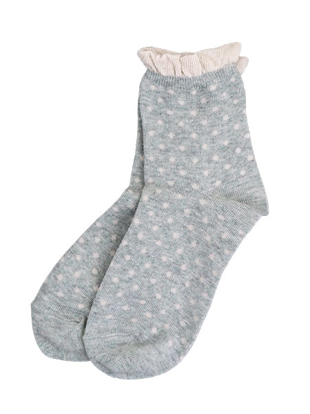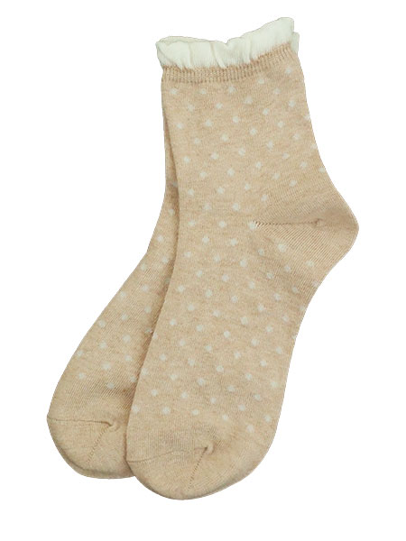 可愛らしいドット柄、さわやかな綿混の日本製靴下です。