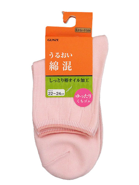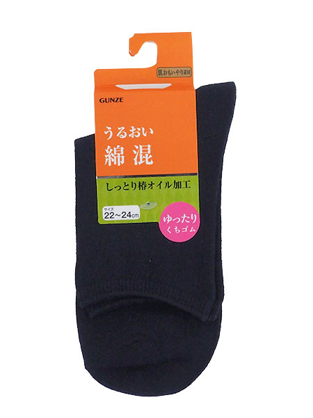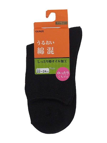 グンゼの婦人ゆったりくちゴムソックス、うるおい綿混、無地。