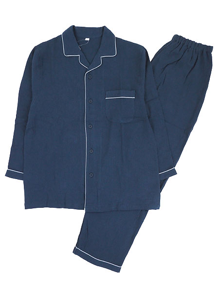 NERUGY 紳士長袖・長パンツパジャマ 綿100%ダブルガーゼ 無地