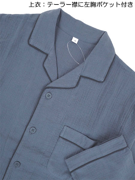 NERUGY、メンズの綿100%ダブルガーゼ素材のパジャマ。